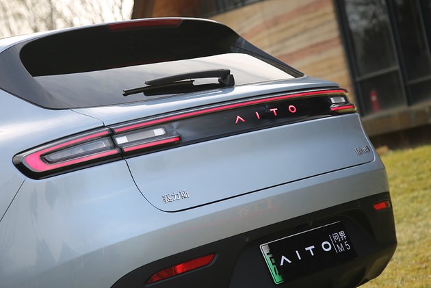 右后翼子板上的加油口在M5 EV上被取消,尾門右下方增加了一個(gè)小小的“EV”標(biāo)識(shí),除此之外真的是再也看不出純電版和增程版的區(qū)別了。說回到設(shè)計(jì)層面,問界M5的溜背造型很有運(yùn)動(dòng)感,細(xì)長的貫穿式尾燈也很精致,將這款車簡潔的設(shè)計(jì)語言貫穿始終。