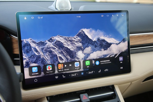 15.6英寸的超大中控觸屏無疑是這臺(tái)車最具吸引力的配置了,其內(nèi)置的鴻蒙OS系統(tǒng)與車身各個(gè)部件進(jìn)行了深度的融合,而且整套界面和智能手機(jī)的操作方式非常接近,都是0級菜單的交互邏輯,常用的功能都可以自由放置在底部的快捷菜單里。