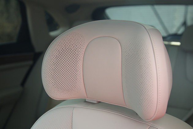 前面提到過的頭枕音響這里要單獨(dú)再說一下,這里面的四個(gè)內(nèi)置揚(yáng)聲器不僅可以用來融入整個(gè)聲場用來聽音樂,同時(shí)也可以作為獨(dú)立的播放單元去使用,例如它可以用來單獨(dú)播放導(dǎo)航語音指令,無論乘客在欣賞音樂或是小憩片刻,導(dǎo)航的語音都不會(huì)打擾到他們。