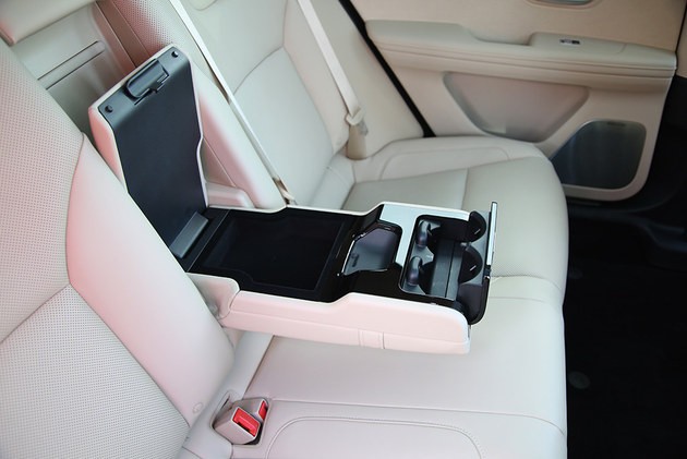 其它功能方面,后排中間的扶手具備一個(gè)隱藏式的儲(chǔ)物格,杯架和可以進(jìn)行翻折并隱藏。中央扶手箱背部也提供了兩個(gè)獨(dú)立的空調(diào)出風(fēng)口以及兩個(gè)USB-Type-C接口(18W和66W),整體實(shí)用性較強(qiáng)。