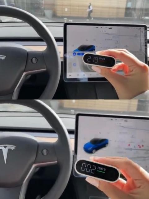 劉先生還用工具檢測過HEPA的效率。去年冬天的重霾天氣,他在室外測得PM2.5數(shù)值已超100,進(jìn)入車內(nèi)開啟“生物武器防御模式”后,測試工具顯示,車內(nèi)PM2.5數(shù)值在2分鐘內(nèi)就降低到了個位數(shù)。