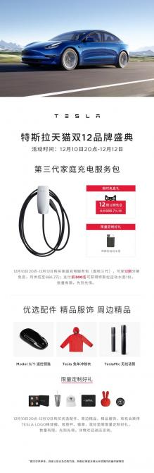 雙十二來(lái)臨之際,為了讓更多車主能享受到更加便捷、實(shí)惠的家庭充電體驗(yàn),特斯拉推出“家庭充電服務(wù)包”活動(dòng),消費(fèi)者只要在12月10日-12日之間下單就能享受最高12個(gè)月的分期免息優(yōu)惠,更有特斯拉定制款水壺限量搶、精品配件超值買(mǎi)贈(zèng)活動(dòng)。