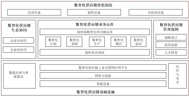 數智化供應鏈是應用數字化和智能化技術賦能計劃、采購、制造、服務、履約、逆向等全流程的供應鏈業(yè)務數字化、決策智能化,實現降本增效、安全穩(wěn)定、綠色低碳等價值創(chuàng)造。