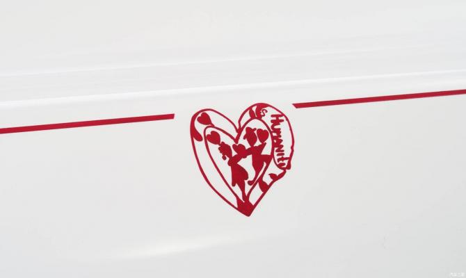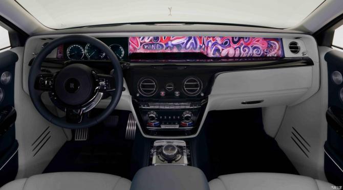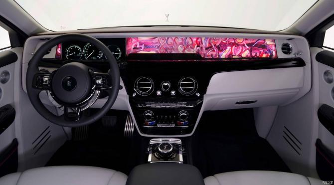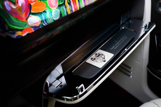 除“藝境藏珍”畫廊的藝術作品外,幻影“六素藝境”典藏版車型還有多種額外的Bespoke定制元素,包括手繪腰線中的薩夏·加法里定制心形圖案、“歡慶女神”的“六素藝境”特殊雕刻底座等。