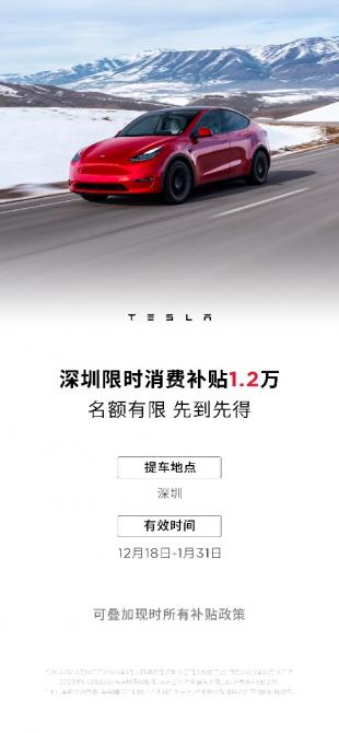 據(jù)估算,在國補和特斯拉多重福利的加碼下,疊加深圳購車消費券福利,12月購入一臺特斯拉汽車最高可省出3.3萬元。