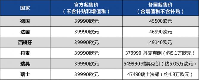 愛馳U6歐洲六國售價