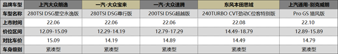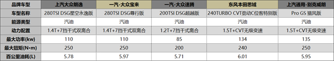為更直觀進(jìn)行數(shù)據(jù)比對(duì),本次決選特選擇近一年上市的新車型,分別為售價(jià)15.09萬(wàn)元的上汽大眾朗逸280TSI DSG星空永逸版(以下簡(jiǎn)稱:朗逸)、售價(jià)14.19萬(wàn)元的一汽-大眾寶來(lái)280TSI DSG尊行版(以下簡(jiǎn)稱:寶來(lái))、售價(jià)14.89萬(wàn)元的一汽-大眾速騰 200TSI DSG超越版(以下簡(jiǎn)稱:速騰)、售價(jià)14.49萬(wàn)元的東風(fēng)本田思域240TURBO CVT勁動(dòng)C位客特別版(以下簡(jiǎn)稱:思域)、售價(jià)14.79萬(wàn)元的上汽通用別克威朗Pro GS獵風(fēng)版(以下簡(jiǎn)稱:威朗)。