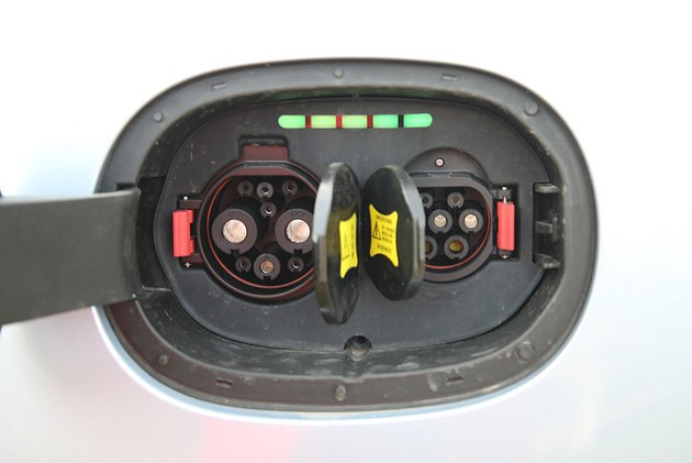 車身左后翼子板上依然是充電接口、直流快充和交流慢充的接口都集成在這里,而且上方還有狀態(tài)指示燈,高級感還是有的。不過從實(shí)際使用情況來看,放在車身左后不如放在右后更方便,畢竟路側(cè)的充電樁更適合連接車身右側(cè)的充電口,左側(cè)的話就非??简?yàn)充電線纜的長度了。
