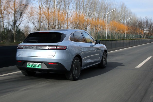 我們拿到的這臺是高配的性能版,也就是四驅(qū)版本。前橋使用的是交流異步電機(jī),最大功率165kW,最大扭矩315N·m;后橋用的則是永磁同步電機(jī),最大功率200kW,最大扭矩360N·m。根據(jù)官方數(shù)據(jù),這臺車0-100km/h的加速成績僅為4.5秒,表現(xiàn)非常強(qiáng)悍。