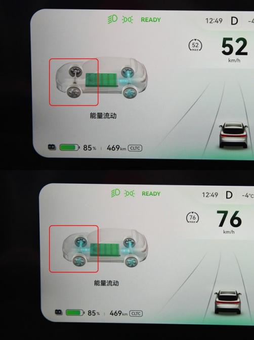 對于動力輸出的策略,從儀表上可以看到這臺車是以后橋電機(jī)為主要動力源,不深踩加速踏板的話,前橋電機(jī)是不會介入(或者介入較晚)的,畢竟后橋的永磁同步電機(jī)相對更省電一些,有利于減小電能的消耗。哦對了,差點(diǎn)兒忘了說,這臺車擁有552公里的續(xù)航里程(CLTC標(biāo)準(zhǔn)),儲能單元是總?cè)萘繛?0kW·h的磷酸鐵鋰蓄電池。