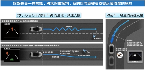 而且從功能來(lái)看,第三代豐田駕駛輔助系統(tǒng)的能力,也早已不是普通的L2級(jí)輔助駕駛。如今,這套系統(tǒng)還特別強(qiáng)化了城市開放道路場(chǎng)景。比如,針對(duì)各類型交通參與者、不同動(dòng)作的預(yù)判式主動(dòng)駕駛輔助,針對(duì)在十字路口轉(zhuǎn)彎、橫穿車輛的輔助功能等等。