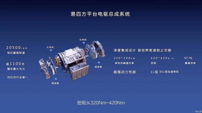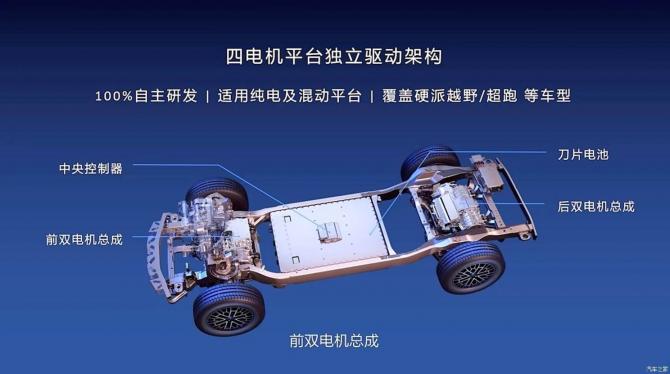 易四方技術平臺,四輪四電機獨立驅(qū)動,純電動、插電式混合動力
