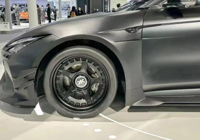 車身側(cè)面整體造型與普通版L7大致相同,不過在細(xì)節(jié)上進(jìn)行了調(diào)整,輪拱采用了寬體造型,黑色輪輞也采用了更加運(yùn)動(dòng)的樣式,輪胎則選用了賽車上常見的光頭胎。