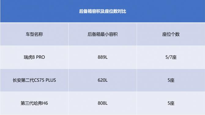 (圖片從上往下,依次為瑞虎8 PRO、長安第二代CS75 PLUS、第三代哈弗H6)