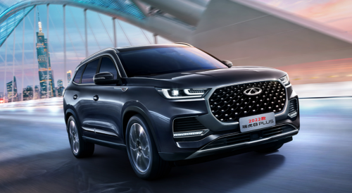 相比之下瑞虎8 PLUS的造型看起來就比較傳統(tǒng)了,采用幾何矩陣鉆石前格柵搭配雙光刃高亮日行燈,整體給人一種莊嚴(yán)大氣的感受,不夠年輕化。