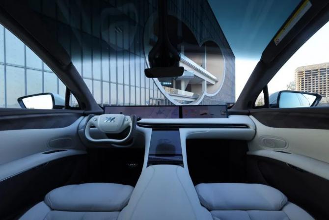 在智己LS7前穹頂玻璃的下方,是一個(gè)半幅式方向盤(pán)。這樣設(shè)計(jì)目的也是一樣,將對(duì)駕駛視野的侵占降至最低,增強(qiáng)駕駛沉浸感,智己還給它取了一個(gè)洋氣的名字,叫“YAT巡航型半幅方向盤(pán)”。