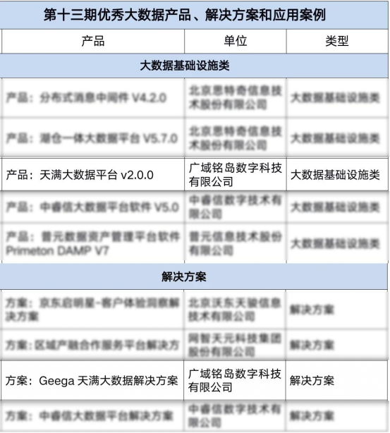 近期,由大數(shù)據(jù)產(chǎn)業(yè)生態(tài)聯(lián)盟發(fā)起的“第十三期優(yōu)秀大數(shù)據(jù)產(chǎn)品、解決方案和應(yīng)用案例”測(cè)評(píng)結(jié)果發(fā)布,廣域銘島天滿(mǎn)大數(shù)據(jù)平臺(tái)和Geega天滿(mǎn)大數(shù)據(jù)解決方案分別入圍。
