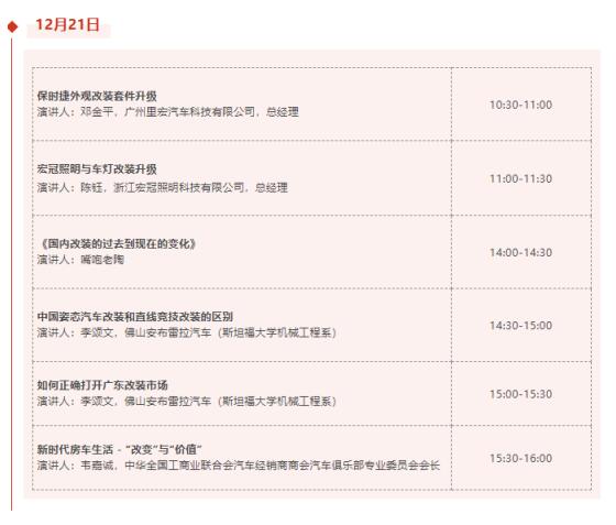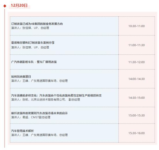 一眾國(guó)際改裝品牌、汽車改裝整體解決方案供應(yīng)商如ABT、Unlimited Performance(簡(jiǎn)稱UP)、CMST、AP Racing、廣州里宏汽車科技有限公司、浙江宏冠照明科技有限公司等,將在活動(dòng)區(qū)內(nèi)與整車廠、4S集團(tuán)、經(jīng)銷商、賽車隊(duì)、俱樂部等目標(biāo)觀眾深入探討合作商機(jī)。論壇區(qū)將聚焦一系列熱門話題, 并特別邀請(qǐng)了廣東競(jìng)速國(guó)際賽車場(chǎng)以及廣汽傳祺影豹車隊(duì)等行業(yè)大咖,分享包括賽事賽道、駕駛技術(shù)、定制改裝車案例、汽車內(nèi)外飾改裝、主機(jī)廠改裝業(yè)務(wù)發(fā)展等。