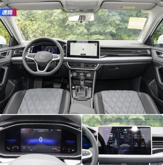 車內(nèi)也是比較中規(guī)中矩的傳統(tǒng)設(shè)計,雖然也有全液晶儀表盤和大尺寸的中控屏,但是較凌渡L的雙聯(lián)屏感覺還是欠缺了一點科技感。而關(guān)于我們今天的運動主題,速騰的車內(nèi)基本上沒有能和“運動”二字沾邊的元素。但速騰還是在配置方面延續(xù)了大眾車系豐富全面的特點、倒車?yán)走_(dá)/影像、全景天窗、發(fā)動機啟停、自動駐車、全液晶儀表盤、CarPlay手機互聯(lián)等全部為全系標(biāo)配。