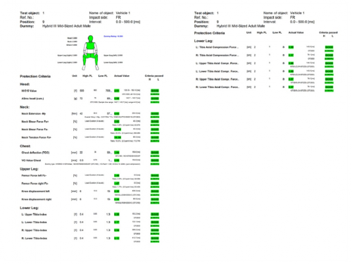 但汽車安全,說到底還得落腳到人安全,值得欣慰的是,M8宗師車上6個(gè)假人乘客均沒有受到致命傷害,假人傷害評(píng)分全都是綠色高分通過。在汽車追尾工況中,前車乘員最為常見損傷為頸部鞭打(Whiplash)損傷。之所以稱之為鞭打損傷,主要在于該損傷因?yàn)槿梭w頸部在追尾工況中,由于缺乏頭后保護(hù),會(huì)像鞭子一般快速前后擺動(dòng)造成。