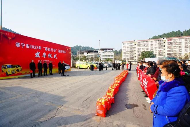 遂寧市2023年“春風行動”返崗專車發(fā)車儀式現(xiàn)場