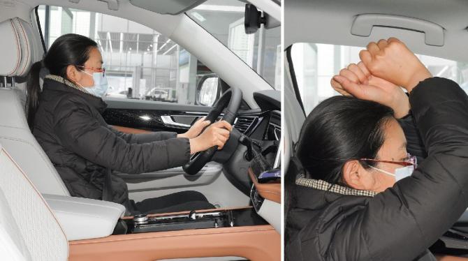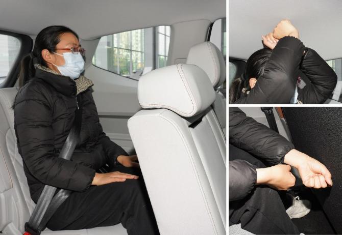 空間表現(xiàn)方面,身高165cm的女性體驗(yàn)者坐在前排,座椅調(diào)至最低,頭部空間超過2拳。來到后排,前排座椅不變的情況下,體驗(yàn)者的頭部空間2拳,腿部空間超過2拳,中間座位的地板也算比較平整。整體空間表現(xiàn)在同級(jí)中屬于上乘。