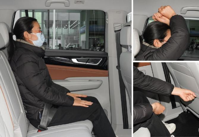 至于第三排,得益于該車長(zhǎng)軸距優(yōu)勢(shì)和平直的車頂線設(shè)計(jì),體驗(yàn)者可以比較輕松地坐進(jìn)去,頭部空間2拳,腿部空間超過2拳,能夠很好地勝任全家出行的用車需求。