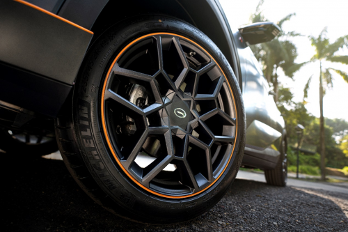 全新一代傳祺GS3·影速為了帶給用戶足夠的新鮮感和沖擊感,還推出了R-STYLE版,不僅在前臉增加風(fēng)刃前鏟設(shè)計(jì),在側(cè)面、車尾和輪轂上均加入R-STYLE性能套件標(biāo)識(shí),例如尾部的中置雙出尾排和六星之芒19寸輪轂,賦予整車極致的運(yùn)動(dòng)特性與速度基因。