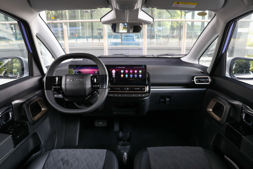 再來看內(nèi)飾上面,2023款KiWi EV在內(nèi)飾上面很是用心,不管做工用料還是科技感營(yíng)造,可以說是同級(jí)別的天花板。其中,大面積地采用秸稈環(huán)保用料和仿麂皮材質(zhì),不僅提升了豪華感,同時(shí)也更具環(huán)保性。中控臺(tái)采用的雙10.25英寸的雙聯(lián)屏設(shè)計(jì),科技感更是得到進(jìn)階。比亞迪海豚呢,采用的設(shè)計(jì)中規(guī)中矩,其中最耀眼的是中控屏幕,在做工和用料上面的品質(zhì)感就有點(diǎn)不是那么盡人意了。