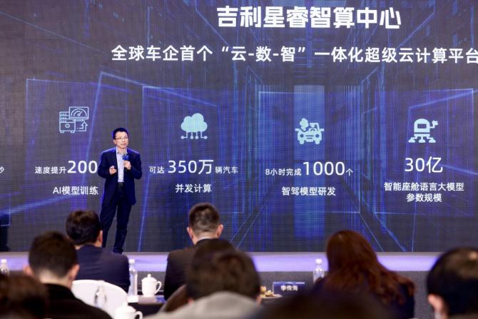 吉利汽車(chē)集團(tuán)副總裁、吉利汽車(chē)研究院院長(zhǎng)李傳海介紹,吉利星睿智算中心擁有“中國(guó)汽車(chē)行業(yè)首個(gè)百億參數(shù)大模型、首個(gè)高速云計(jì)算網(wǎng)絡(luò),及業(yè)界首創(chuàng)的行業(yè)研發(fā)工具鏈、數(shù)據(jù)歸集算法、云邊協(xié)同計(jì)算模式”等10余項(xiàng)行業(yè)領(lǐng)先的首發(fā)技術(shù)。星睿智算中心創(chuàng)新性地將智能駕駛、大數(shù)據(jù)、人工智能和云計(jì)算融為一體,可實(shí)現(xiàn)吉利控股集團(tuán)體系下含航空航天、高清地圖、智慧能量、智慧動(dòng)力、智能架構(gòu)、智慧出行在內(nèi)的全生態(tài)數(shù)據(jù)合規(guī)共享,技術(shù)業(yè)務(wù)覆蓋領(lǐng)域全行業(yè)最廣,是吉利“車(chē)、路、云、網(wǎng)、圖”一體化的算力底座,可為汽車(chē)生態(tài)鏈全環(huán)節(jié)提供研發(fā)和運(yùn)營(yíng)支撐,讓吉利在智算上擁有了領(lǐng)先行業(yè)3年的代際優(yōu)勢(shì)。