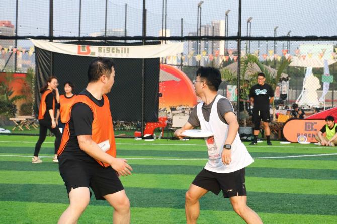 在活動(dòng)的重頭戲飛盤比賽開(kāi)始前,主辦方陳述了比賽規(guī)則,并現(xiàn)場(chǎng)抽簽決定了參與者人員分組。比賽共分為ABCD四組,依次對(duì)戰(zhàn),分別進(jìn)行了練習(xí)局、競(jìng)賽局共四場(chǎng)比賽。滿場(chǎng)歡聲笑語(yǔ),氣氛在最終的競(jìng)賽局時(shí)達(dá)到了高潮。