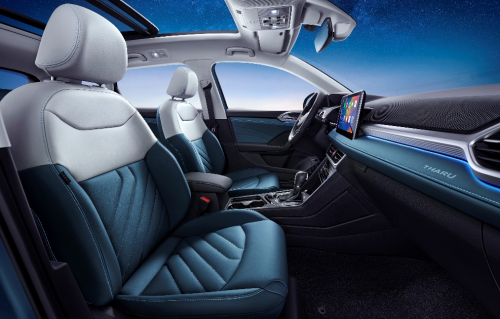 此外,新途岳內(nèi)飾也提供灰色、青色、紅色及金色主題配色,富有層次感的一體式橫向布局儀表臺(tái)、大量軟性材質(zhì)的使用與上下拼色的座椅設(shè)計(jì),讓座艙更顯寬廣通透,品質(zhì)感倍增。