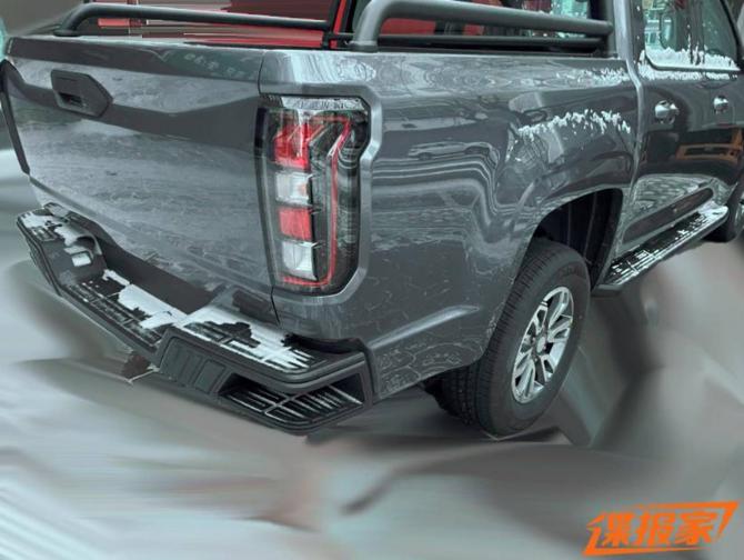 該車根據(jù)定位用途的不同側(cè)重,將會(huì)有商用版、乘用版、越野版三種類型。外觀方面,編輯個(gè)人判斷,雙橫幅銀色飾條內(nèi)部有鏤空元素點(diǎn)綴出車型為商用車型,貨廂部分有龍門(mén)架更加適合貨物的固定。