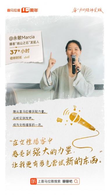 永敏在對(duì)外經(jīng)濟(jì)貿(mào)易大學(xué)讀書(shū)時(shí),為了補(bǔ)充課外知識(shí),她在喜馬拉雅上收聽(tīng)魯迅等人的有聲書(shū)。畢業(yè)后,永敏去倫敦留學(xué),身居異鄉(xiāng),她每天都會(huì)雷打不動(dòng)地聽(tīng)喜馬拉雅的節(jié)目,聲音是她與故鄉(xiāng)的連接。工作后,因?yàn)榻佑|到一個(gè)叫做“IamRemarkable”的項(xiàng)目,她深刻感知到女性價(jià)值被低估了,她想要聯(lián)同各行各業(yè),去激發(fā)女性力量。2022年6月,永敏所在的女性聯(lián)盟也在喜馬拉雅開(kāi)設(shè)了播客節(jié)目《她山之石》,通過(guò)對(duì)話有智慧、有力量的女性伙伴,分享榜樣的故事、呈現(xiàn)多元的聲音、傳遞聯(lián)結(jié)的能量,啟發(fā)女性成長(zhǎng)。