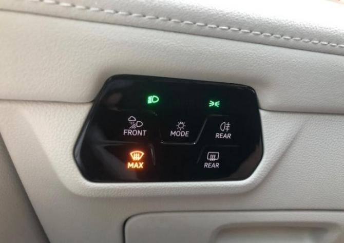 燈光調(diào)節(jié)和前后擋風(fēng)玻璃的除霧在左腿上放,也是用的觸摸式,很有科技感。