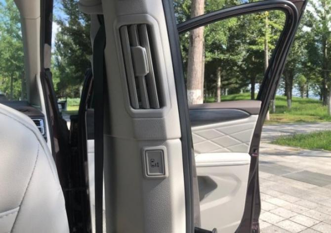 B柱的出風(fēng)口和開關(guān)車門按鍵,威然這車有很多可以開關(guān)門的地方,前面可以操控,B柱可以,拉滑門的門把手也可以,所以那個(gè)方便就用那個(gè)。
