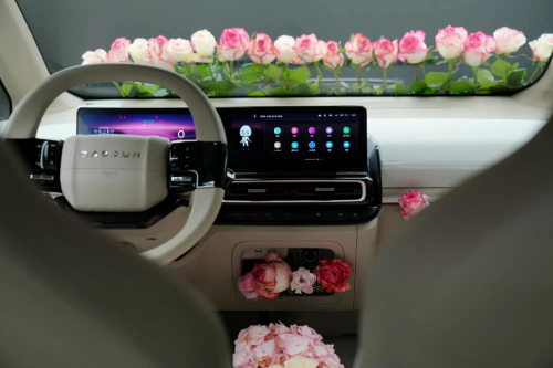 2023款KiWi EV的內(nèi)飾設(shè)計屬于輕奢高級風(fēng),對于愛好DIY的女生而言,是非常友好的。而且高端麂皮材料與未來銀或星際黑兩種潮色搭配,質(zhì)感提升非常明顯。車內(nèi)的10.25英寸的一體式瀑布雙聯(lián)屏能夠?qū)崿F(xiàn)多重功能,包括語言交互助手、桌面自定義、多媒體影音、導(dǎo)航地圖等娛樂性功能,近期升級的系統(tǒng)還對界面主題和語音助手進(jìn)行了優(yōu)化,確實給足了用戶足夠的驚喜。