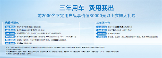 以“13萬純電SUV普及者”之名,風(fēng)行雷霆本次上市共推出7款車型,指導(dǎo)價(jià)格區(qū)間覆蓋12.99-22.99萬元。同時(shí),東風(fēng)風(fēng)行還為首批客戶提供多項(xiàng)獨(dú)享服務(wù)政策,以“三年用車,費(fèi)用我出”為主題,讓“普及”更貼心,更到位。