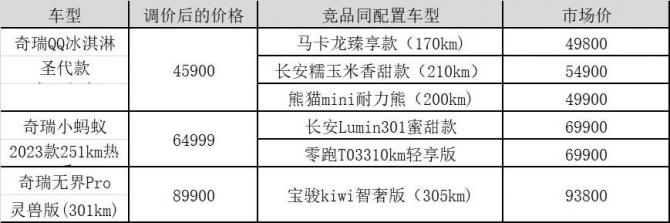 2023年3月27日0點(diǎn)起,奇瑞新能源旗下奇瑞QQ冰淇淋、奇瑞小螞蟻和奇瑞無(wú)界Pro三款產(chǎn)品官方指導(dǎo)價(jià)正式回調(diào),至高回調(diào)幅度9000元。當(dāng)汽車(chē)行業(yè)最殘酷的價(jià)格戰(zhàn)打響,限時(shí)降價(jià)、保價(jià)等奇招盡出時(shí),奇瑞新能源將格局直接拉滿,成為純電小車(chē)首家官降。