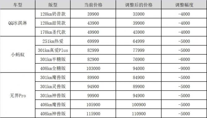 即日起,奇瑞新能源微型純電車(chē)型價(jià)格正式回調(diào)。其中,奇瑞QQ冰淇淋官方價(jià)格回調(diào)幅度4000元,奇瑞小螞蟻價(jià)格回調(diào)幅度 5000-9000元,奇瑞無(wú)界Pro 價(jià)格回調(diào)幅度5000元。