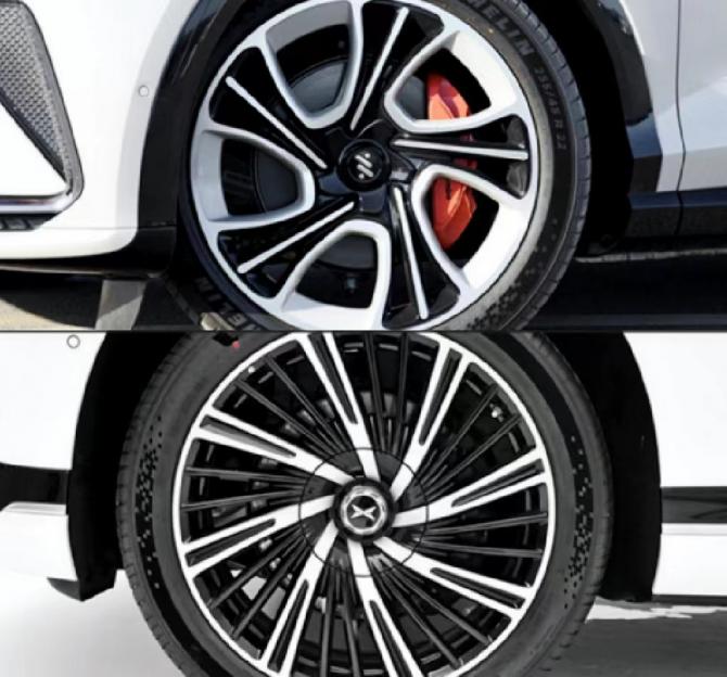 下面來對比輪胎,這點比較一致,兩臺車均采用了米其林Pilot Sport EV高性能專用輪胎,抓地力很強可以輕松應對電動車的高扭特性。智己LS7輪胎規(guī)格是255/45 R22,比小鵬的255/45 R21大了一寸,同樣紅色的Brembo四活塞剎車卡鉗使得智己LS7看上去更運動。 |