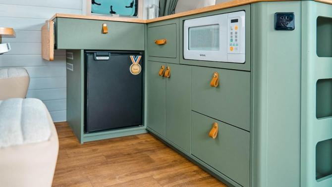 走進車內,旅行家RVLIFE露營版亦是將年輕人的玩樂心理牢牢把握!除了可滿足用戶旅途中各種生活需求的集合50升冰箱、微波爐、飲水機等生活設施的一體式櫥柜以外,旅行家RVLIFE露營版車內還配備了投影娛樂裝備,可供用戶在駐車時擁有私人影院般的娛樂空間。此外,符合人體工程學和使用習性的3+2座椅布局,還具備靈活應變功能。用戶可將第二排座椅變成對向卡座,搭配抽拉式小桌板,營造小型聚餐區(qū);也可將座椅靠背翻折,拼成一張雙人床,打造成可休憩的睡眠區(qū)。