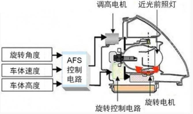 那這么神奇的功能究竟是怎么實現(xiàn)的呢?其實自適應前照燈系統(tǒng)共由傳感器、ecu、車燈控制系統(tǒng)和前照燈構成。汽車車速傳感器和方向盤轉角傳感器不斷地把檢測到的信號傳遞給ecu,ecu根據傳感器檢測到的信號進行處理,把處理完后的數據進行判斷,輸出前照燈轉角指令,使前照燈轉過相應的角度。