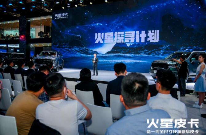 4 月 18 日 ,2023 上海車展正式開幕 , 新一代全尺寸硬派豪華皮卡—— " 火星 " 皮卡全球震撼首發(fā) , 成為中國皮卡品類的破局者 , 開啟中國全尺寸皮卡新時代 , 作為全球首款 48V 柴油混動全尺寸硬派豪華皮卡 , 預售價 11.88-18.78 萬元 , 引發(fā)行業(yè)巨震 , 火星皮卡的正式亮相在上海車展百家媒體的共同見證下開啟了中國皮卡市場新紀元。