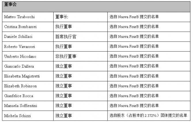 依據(jù)意大利證券交易所管控的《市場規(guī)則說明》第IA.2.6.7條的規(guī)定,下列董事特此宣布,他們在被任命后將持有下列相應(yīng)數(shù)量股份: