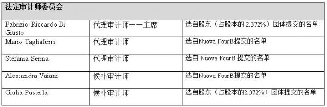 股東大會根據(jù)已提交的兩份候選人名單,特此任命新的法定審計師委員會,其任期直至截至2025年12月31日的年度財務(wù)報表獲批。委員會由以下組成: