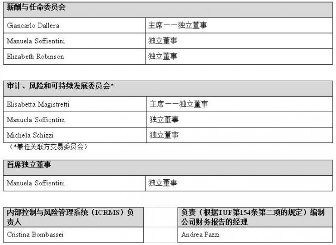 董事會已根據(jù)TUF第147條第三項、第148條以及《公司治理準(zhǔn)則》規(guī)定,核查了董事和法定審計師委員會的成員是否已根據(jù)相關(guān)信息遵守獨立性的要求。