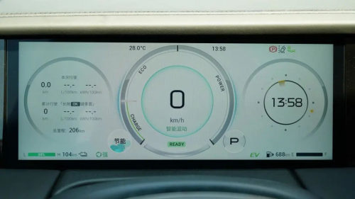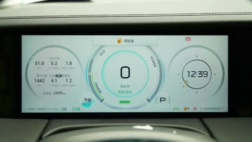 第二天:泉州繼續(xù)出發(fā),駛向?qū)幉?,連續(xù)行駛超12小時,當日共計行駛704.4km,表顯油耗4.0L/100km,電耗是1.2kWh/100km,車輛儀表上已不顯示剩余續(xù)航公里數(shù);