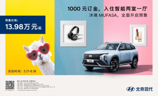 在沐颯MUFASA預售期間,北京現(xiàn)代在天貓平臺官方旗艦店特別推出專享“智享·家 搶定禮遇”: