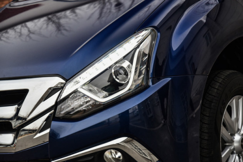 鷹眼式前大燈配備遠(yuǎn)近光燈一體式的LED光源。轉(zhuǎn)向燈與霧燈則還保留了一些皮卡車型的粗獷,為傳統(tǒng)的鹵素光源,不過這也不是問題,畢竟鹵素光源在光線不好時(shí)可以提供更強(qiáng)的穿透力,反而更利于皮卡這類車型。
